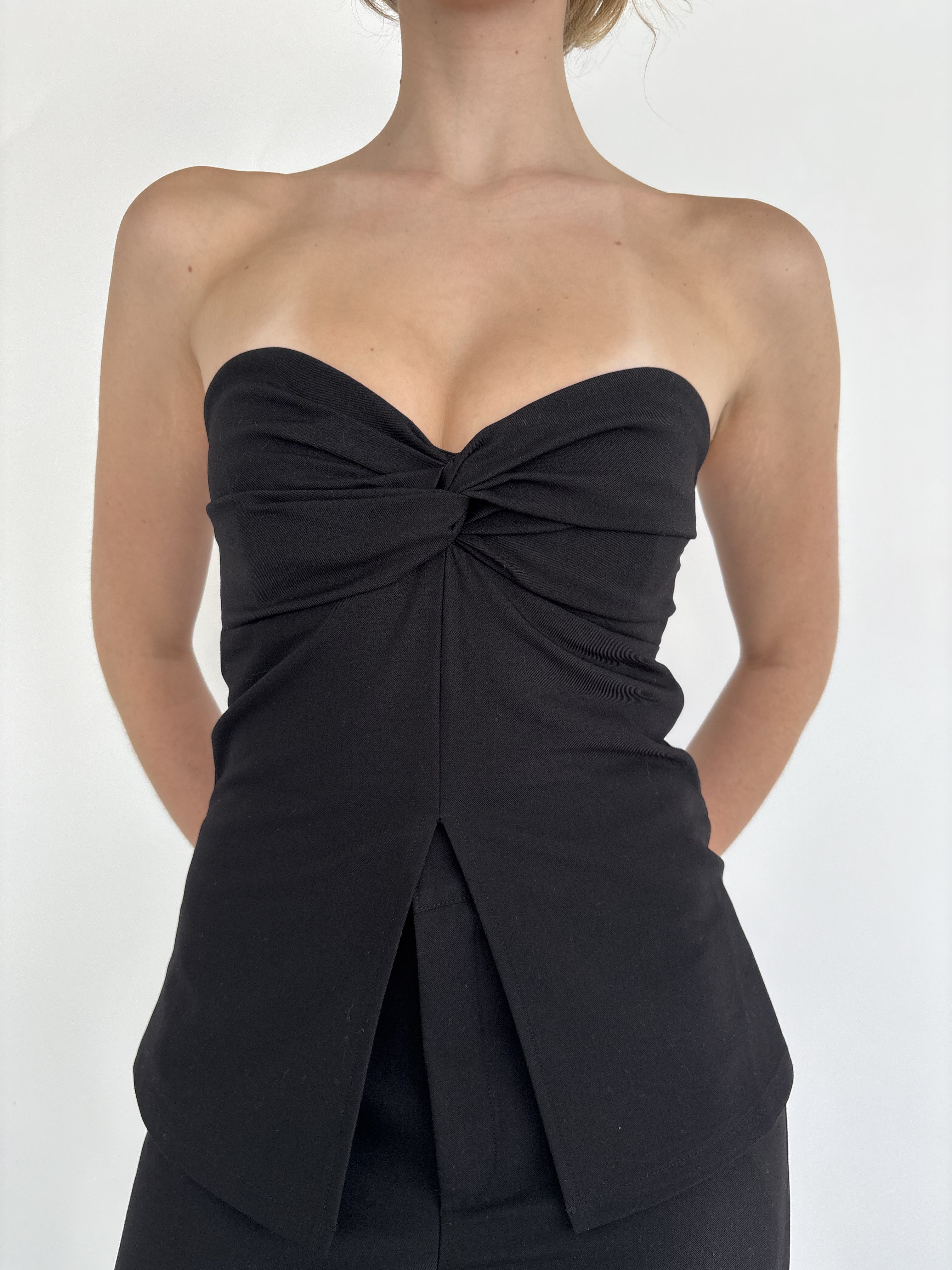 The Ariella top features a stylish twist front and a flattering middle hem. Crafted with thick, high-quality material and a convenient side zipper, this top provides both comfort and style in one. Elevate your wardrobe with this versatile and chic addition