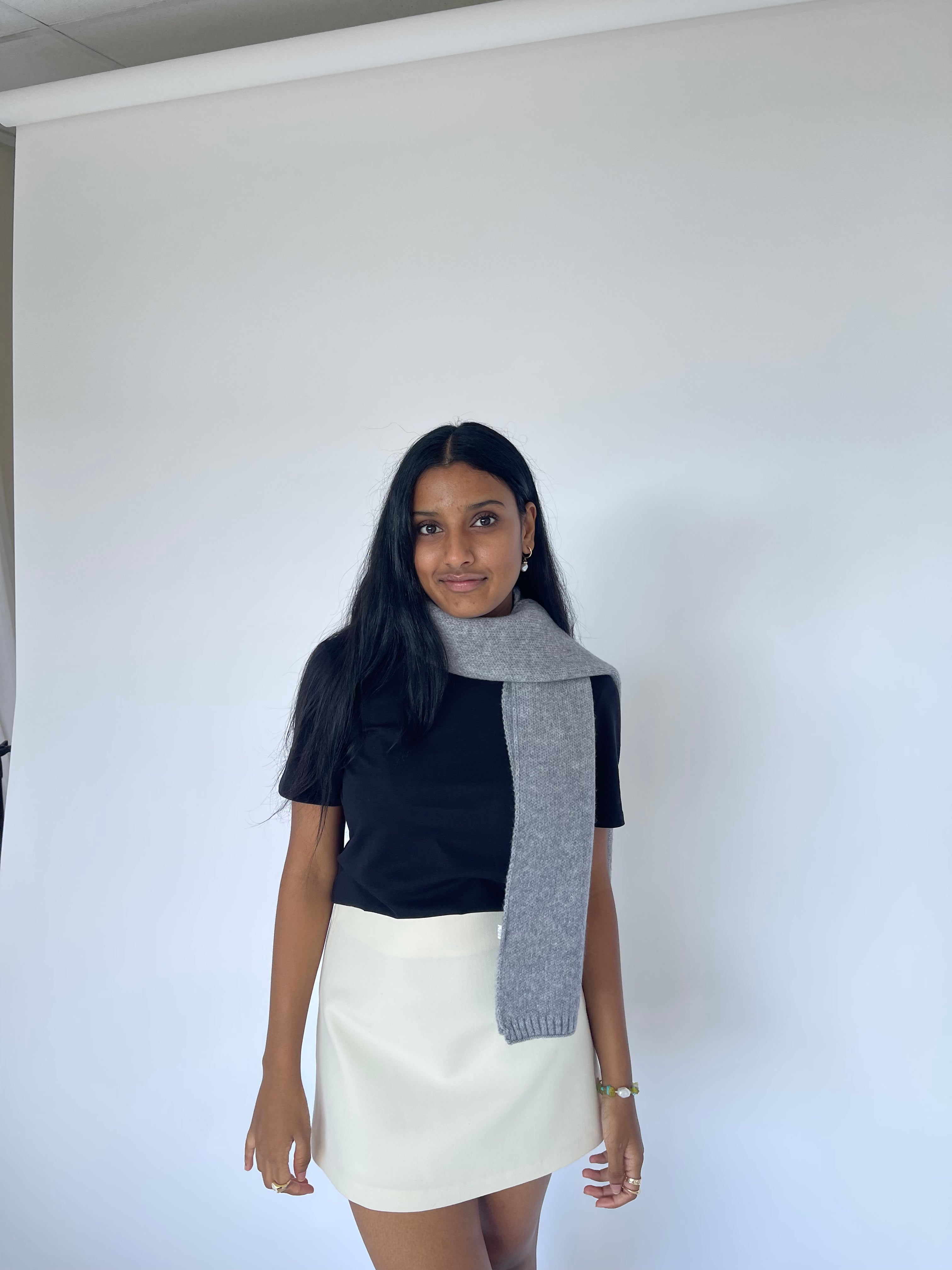 Perfect for winter, this knitted scarf in a muted grey shade will keep you warm and stylish. Crafted from soft acrylic yarn, its lightweight design offers a cozy layer of insulation while the contemporary knit ensures you stay chic and fashionable.