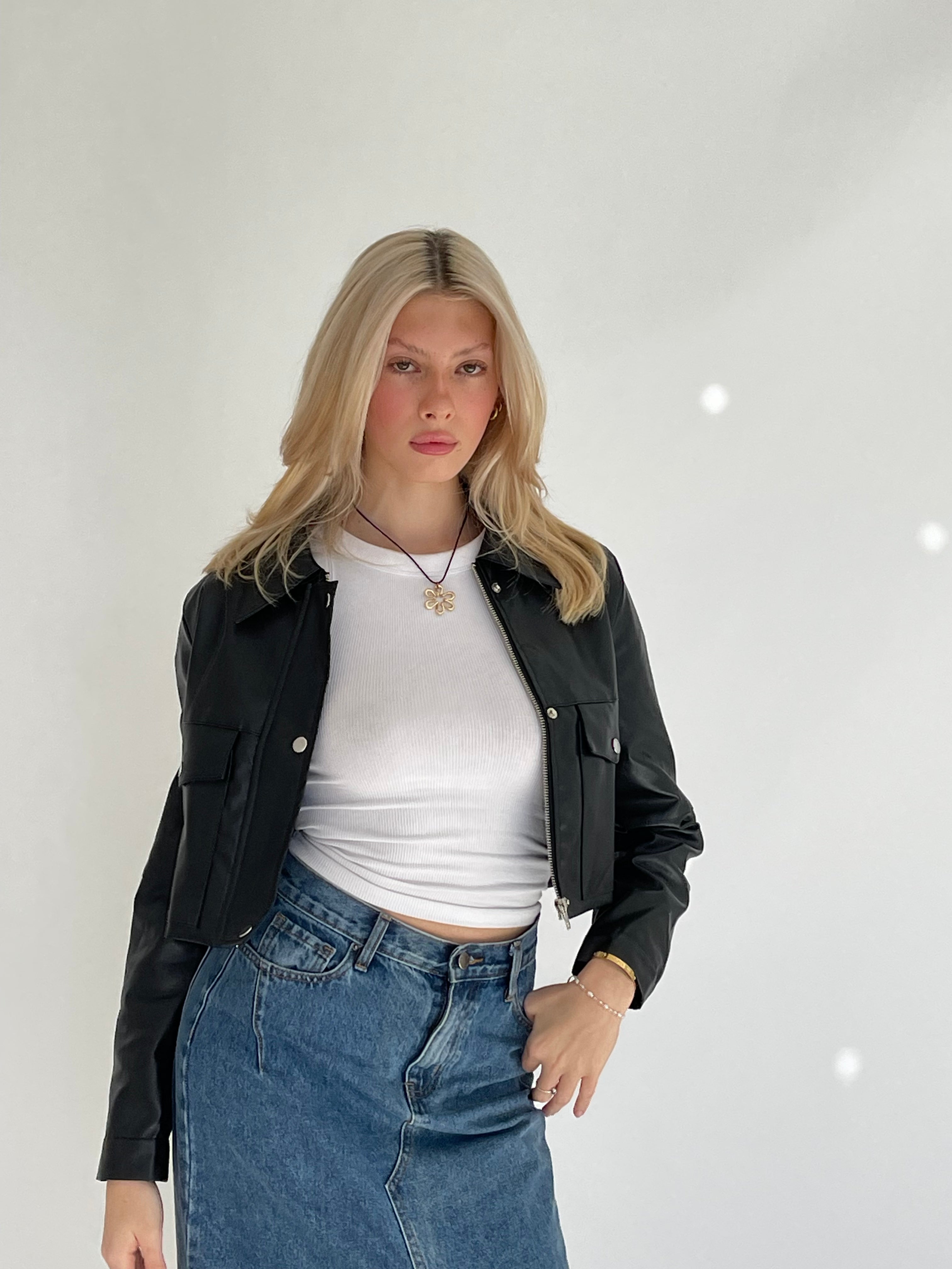 The Jocelyn Faux Leather jacket is the perfect choice when looking for a timeless, timeless solution. Crafted from a blend of leather and faux materials, this stylish black jacket will provide a sturdy protection against the elements and will have you looking your best.