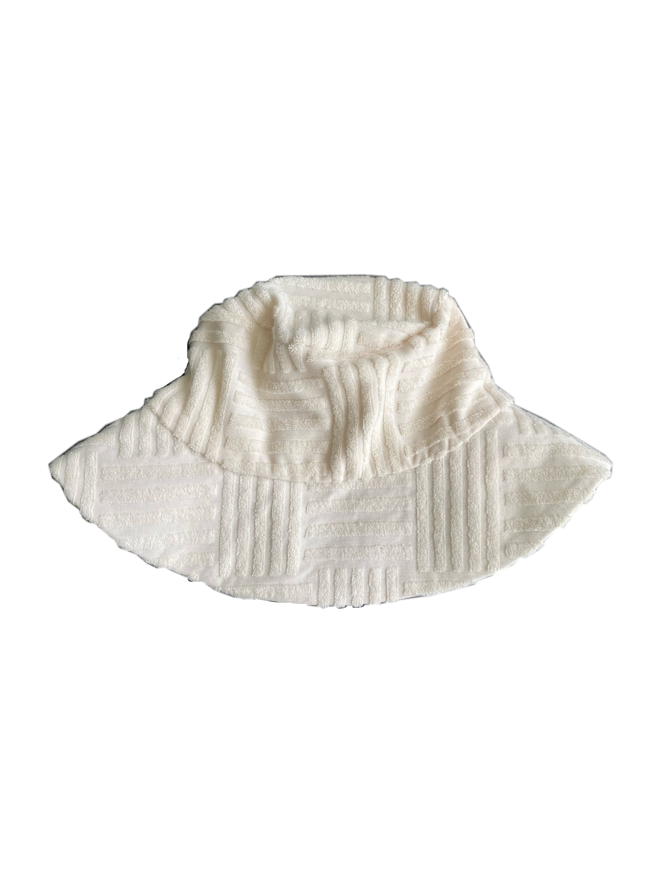 This Terry Toweling Bucket Hat is sure to make a statement. Its terry toweling material gives it a stylish, modern look while also being comfortable and lightweight. Perfect for summer days.