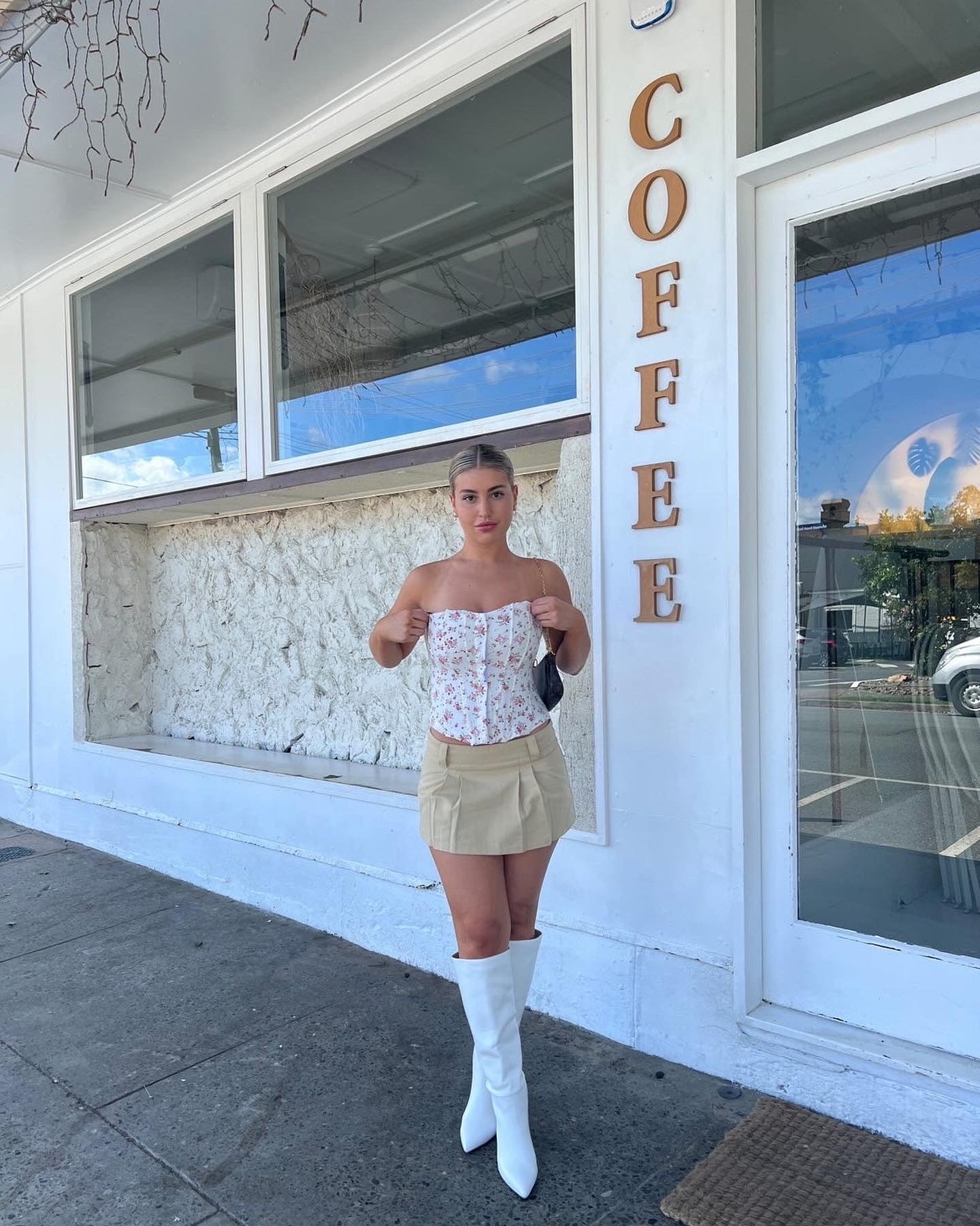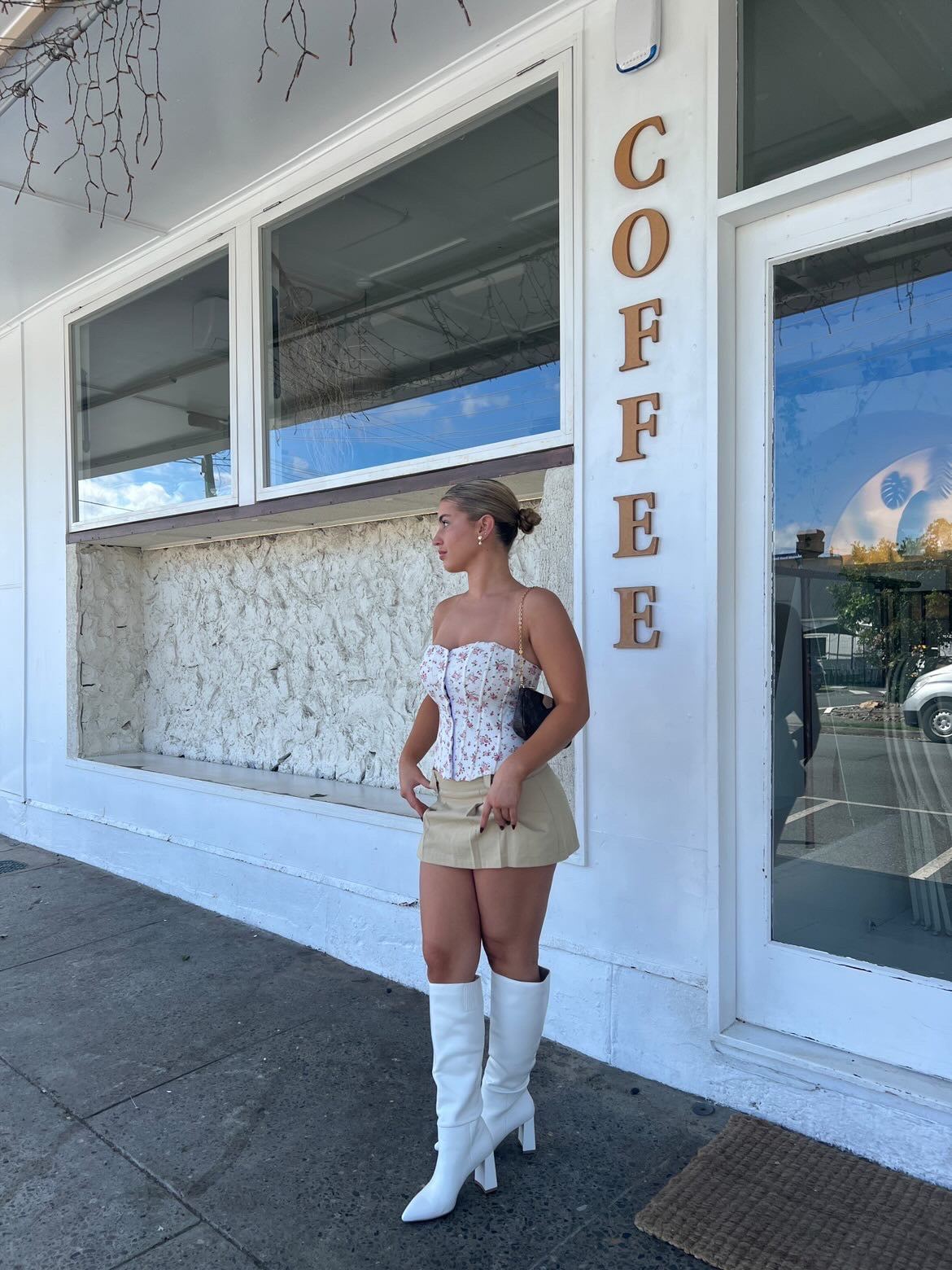 Look stylish and feel comfortable in the Venice Mini Skirt. This beige skirt is designed to be suitable for everyday use. Its mini length gives you the perfect combination of form and function.